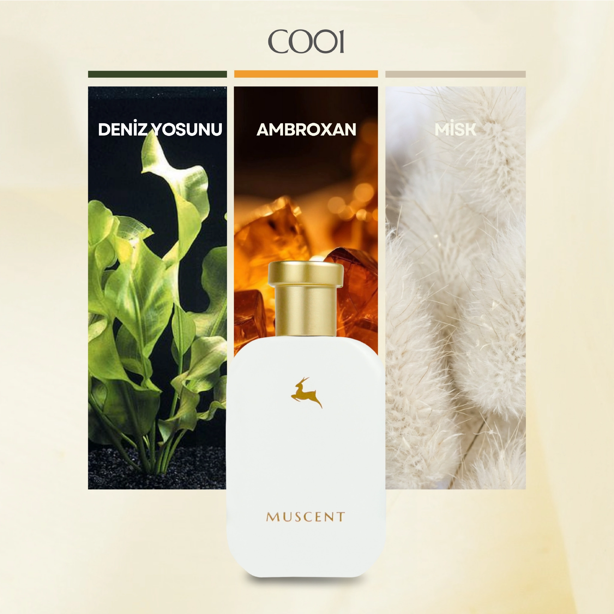 Tuzlu deniz esintisi ve yeşilin taze renklerinin harmanları; deniz yosunu ve calone, denizin üzerinde parlayan güneşin sıcak ışıltıları; misk ve ambroksan, suyun estetiğinden bir demet sunuyor.