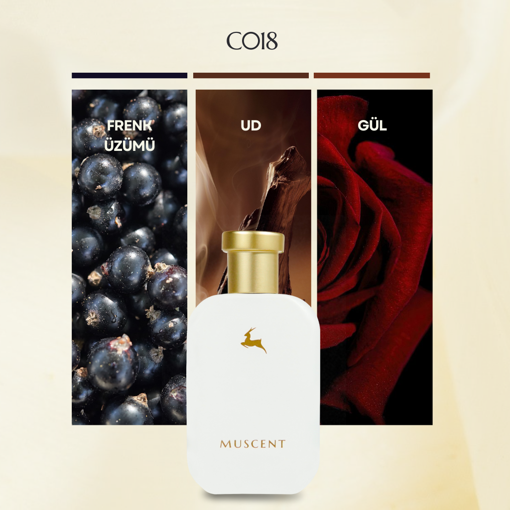 En Yoğun Hissedilen Notalar: Gül, Siyah Frenk Üzümü, Ud, Paçuli