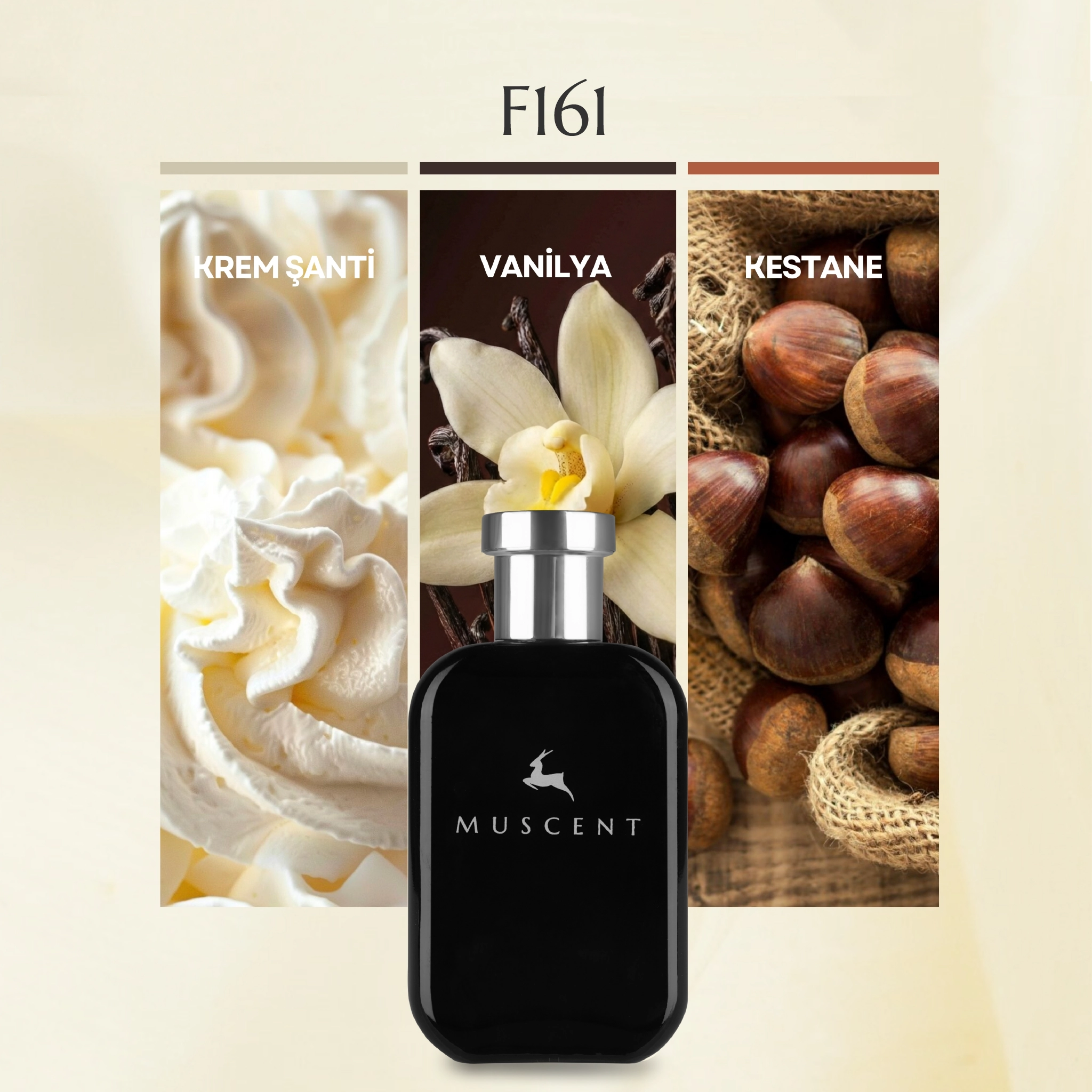 En Yoğun Hissedilen Notalar: Krem Şanti, Vanilya, Kestane, Sandal Ağacı