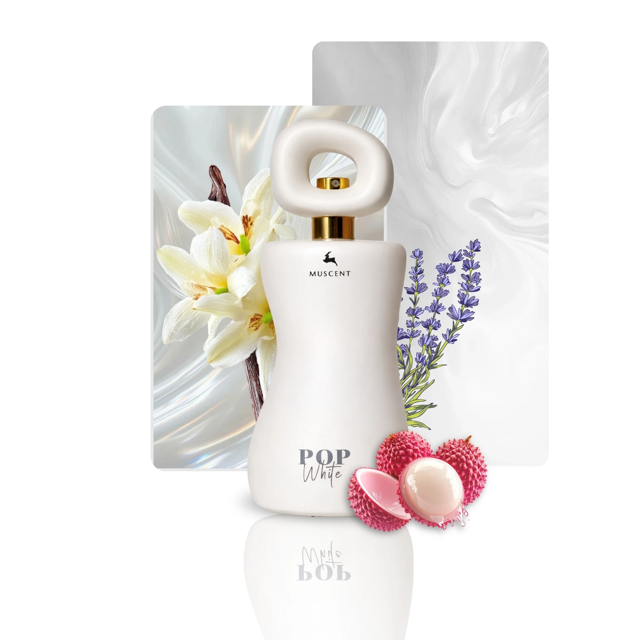 Temiz ve modern bir peri dokunuşu… Pop White, liçinin şeffaf ve berrak meyvemsi açılışıyla ten üzerinde doğal bir etki yaratır; vanilya ve tonka fasulyesinin kremsi sıcaklığıyla yumuşak ve dengeli bir karakter kazanır. Aromatik ve odunsu nüanslar, kompozisyona rafine bir derinlik ekler.